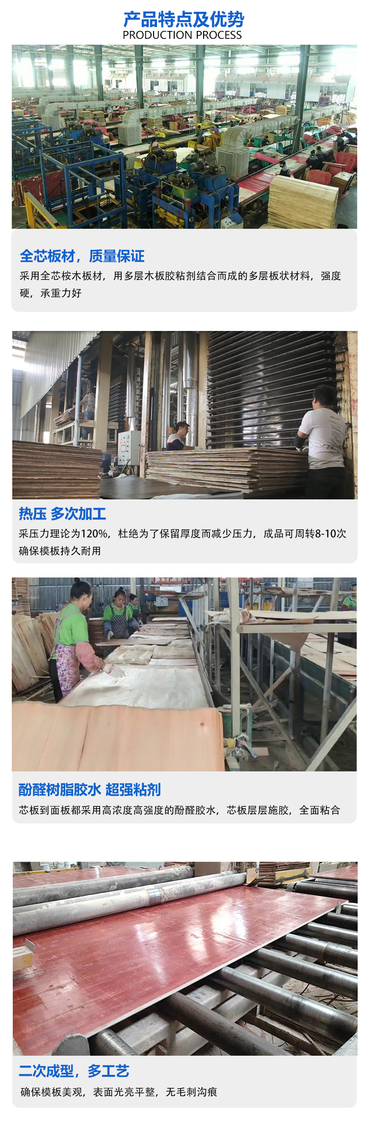 3、不翹曲、不變形、不開裂、耐水性能好、周轉(zhuǎn)次數(shù)高、使用壽命長。