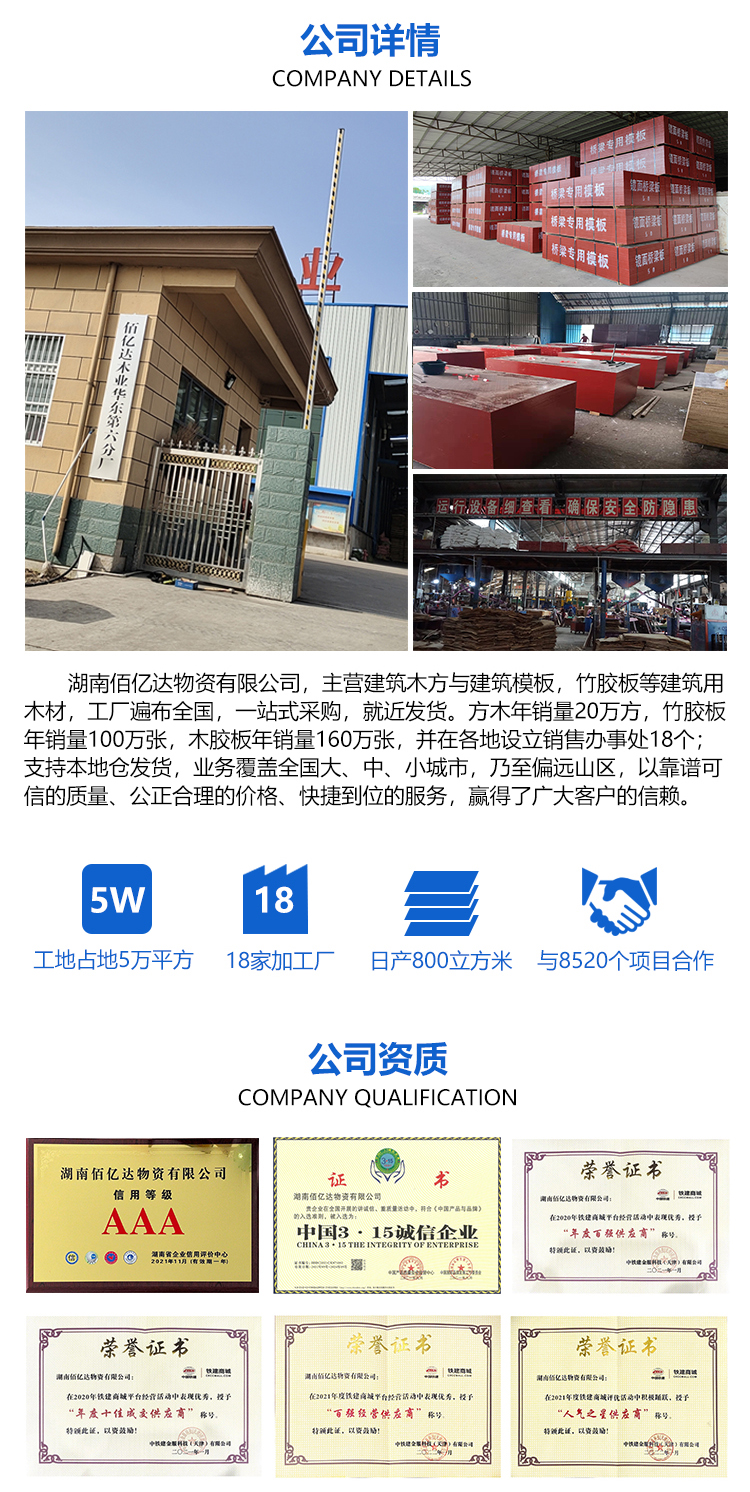 您好,歡迎來到湖南佰億達物資有限公司生產(chǎn)、經(jīng)銷、批發(fā)各種規(guī)格的建筑方木板材、木膠板等等。