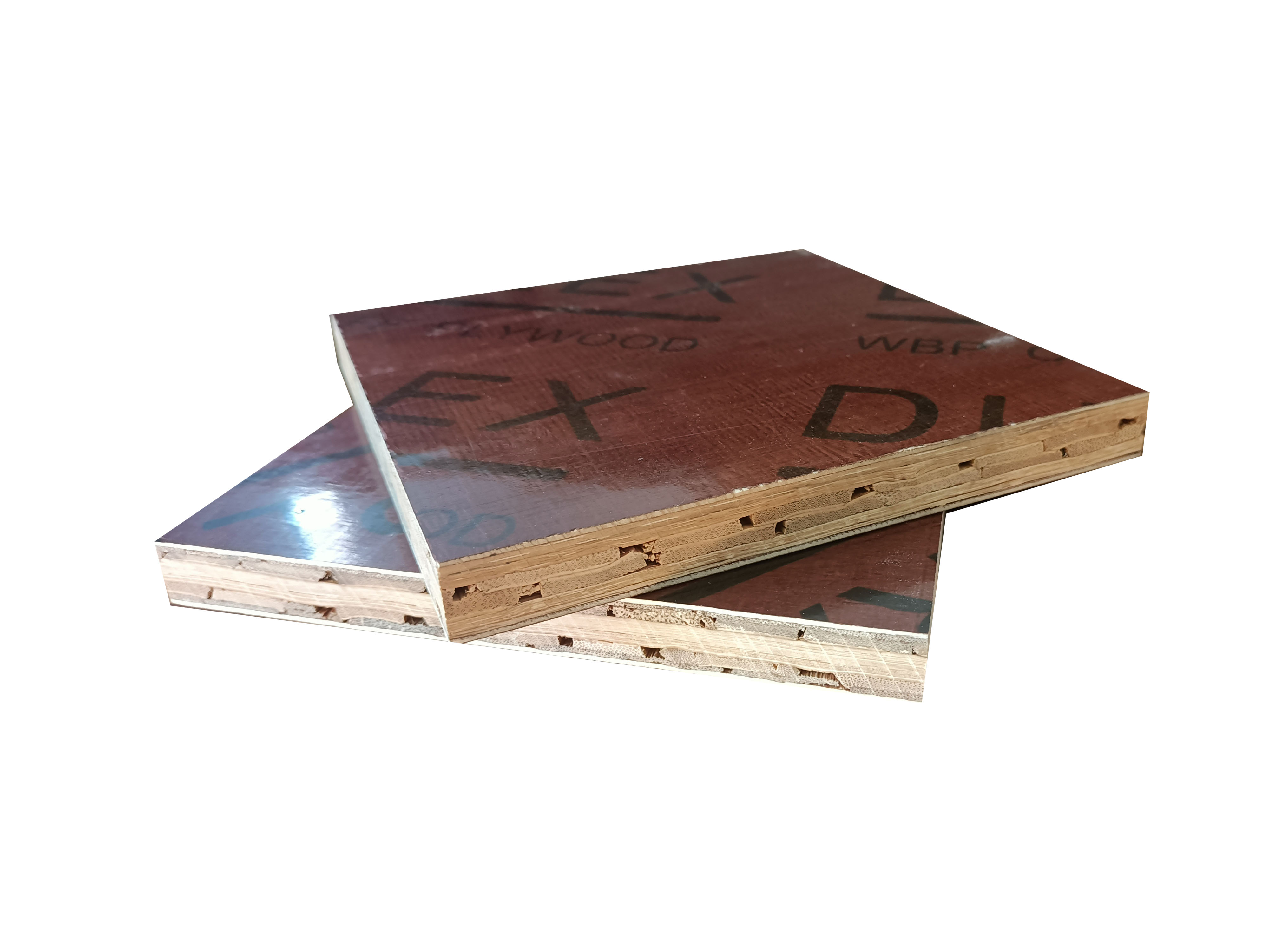 2、本產(chǎn)品表面覆膜為紅色膜紙。高強(qiáng)度橋梁模板采用精品竹簾縱橫交錯排列,輔以酚醛樹脂膠水,經(jīng)高溫高壓而成,其承受的強(qiáng)度相當(dāng)于木模板的4-10倍。承受強(qiáng)度高、韌性好,且表面光滑平整。