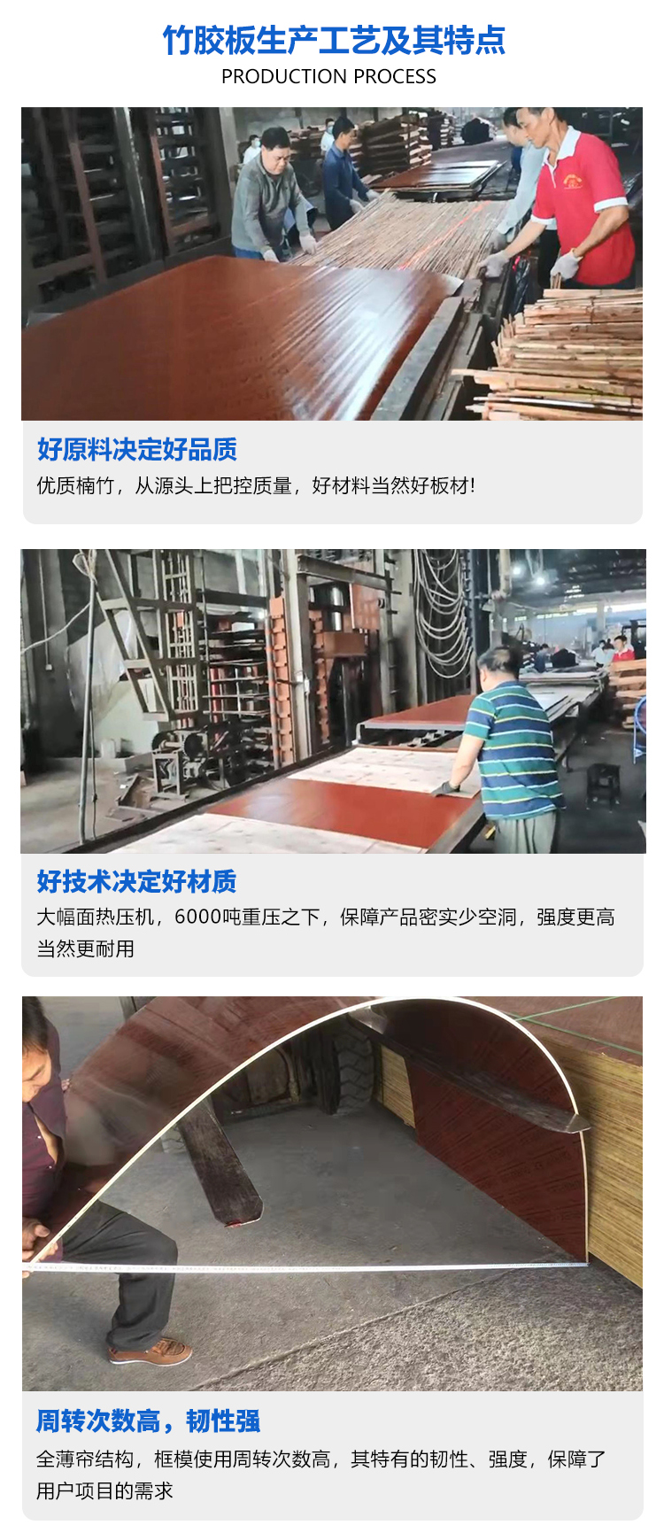以標(biāo)準(zhǔn)竹簾搭配中簾、薄簾戓厚簾,選用無節(jié)楊木面板和木槳膜紙混合壓制而成。用標(biāo)準(zhǔn)簾、中厚混合簾生產(chǎn)出來的竹膠板具有較好的硬度和亮度,適合對混凝土表面要求高的橋梁工程。竹膠板是以毛竹材料作主要架構(gòu)和填充材料,經(jīng)高壓成坯的建材。竹膠板,是高強(qiáng)覆膜橋梁板,建筑模板,及車廂底板等,竹膠板應(yīng)用廣泛,深受用戶青睞。